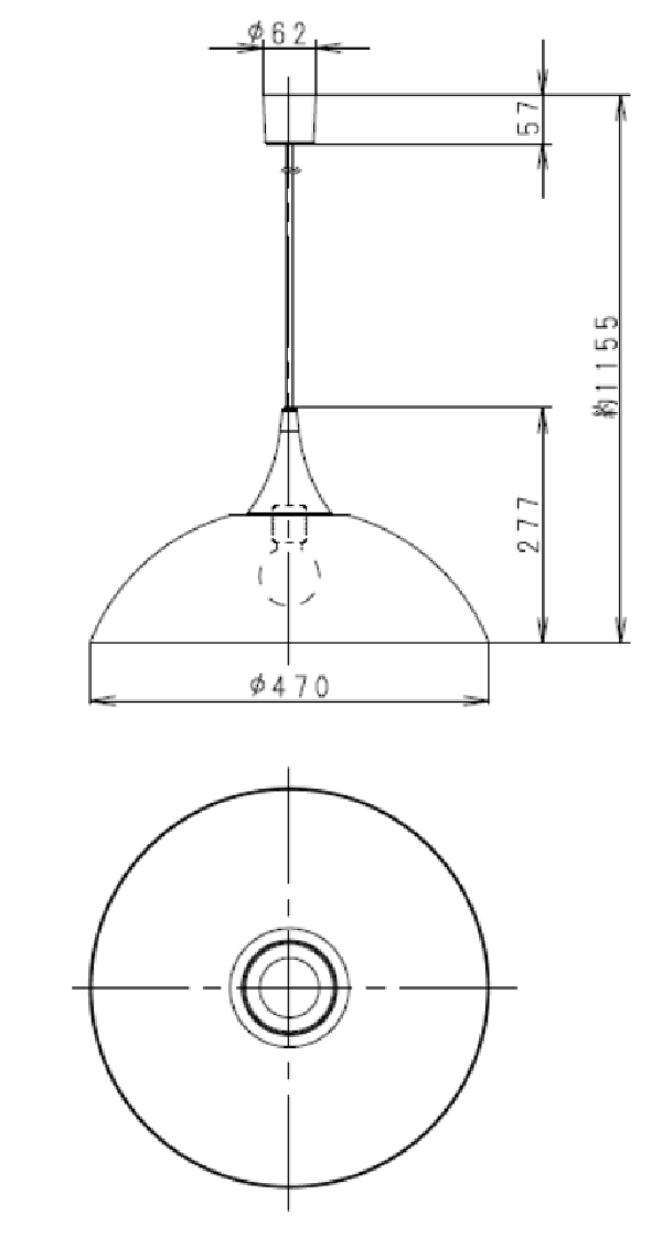 半球型のシェードが光を効率良く反射し、直接的な光と柔らかな光をバランスよく演出。
