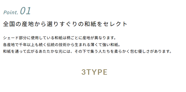 日本のあかり文化において、重要な役割を果たしてきた和紙の魅力が活きるランプシェードです。