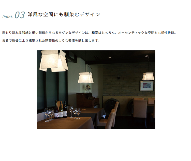 和紙と鋼線により生まれたシャープな陰影は、障子の魅力を継承し、新しいスタイルで日本の伝統美を表現しています。