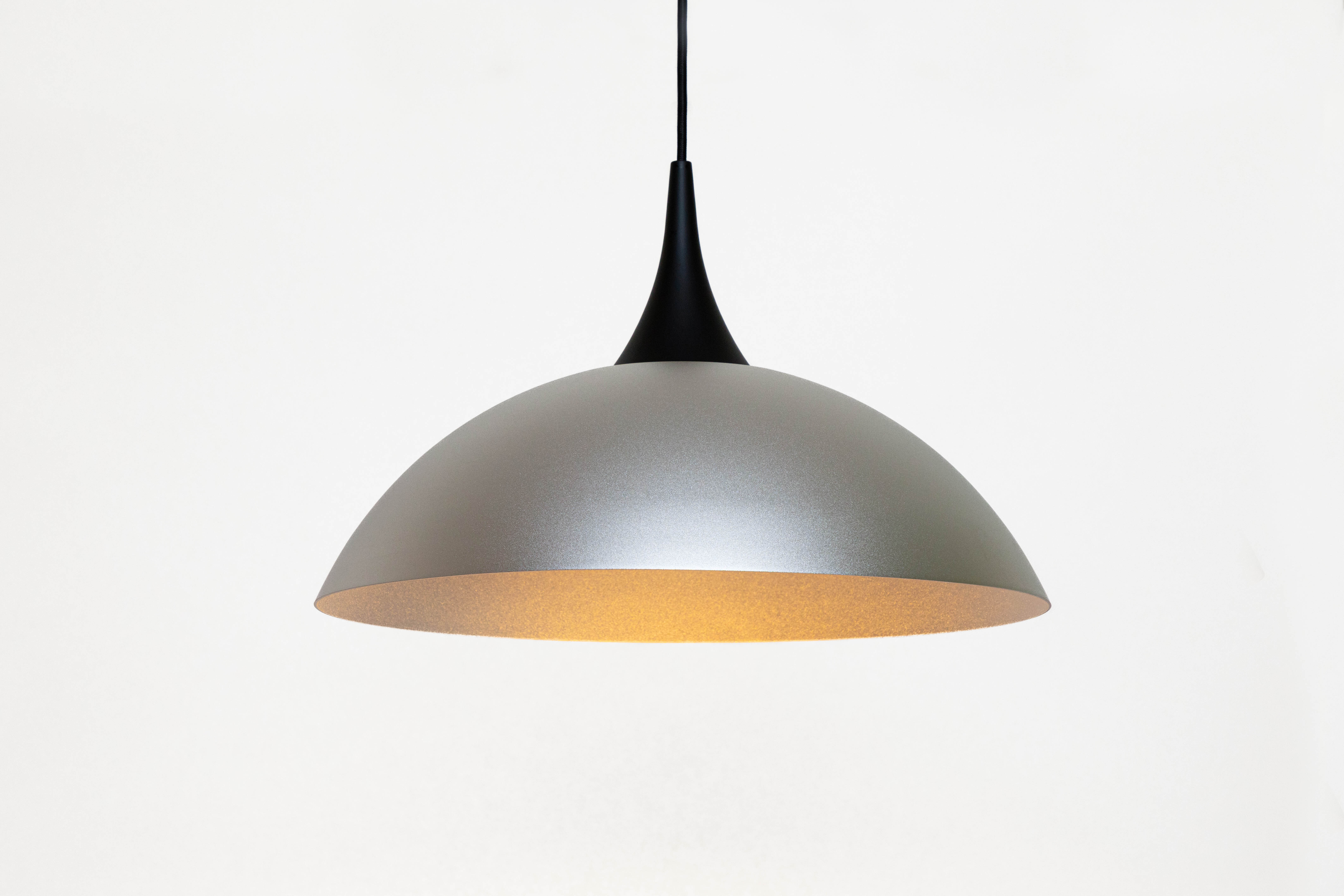 アルマイト加工による美しい金属の質感と、シンプルな半球型デザインが融合したペンダント。