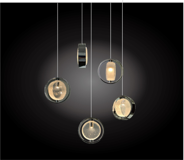 ガラスの側面はマット仕上げ、正面にはカスミ柄の表面加工を施すことで、変化に富んだ美しい表情の光を生み出します。