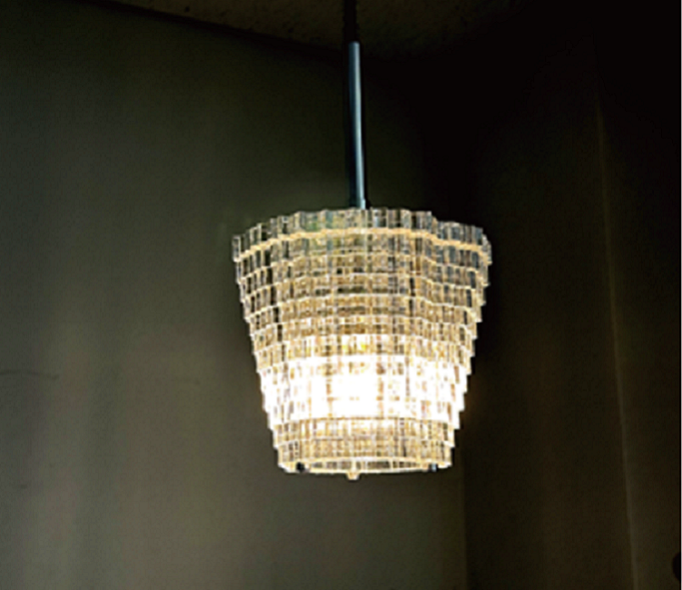 透明アクリルを精緻に重ね合わせた構造体は、まるで“光を彫刻した”かのよう。