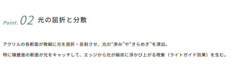10mmの厚みが生む奥行きと立体感、断面のエッジがもたらすシャープな光のグラデーション。